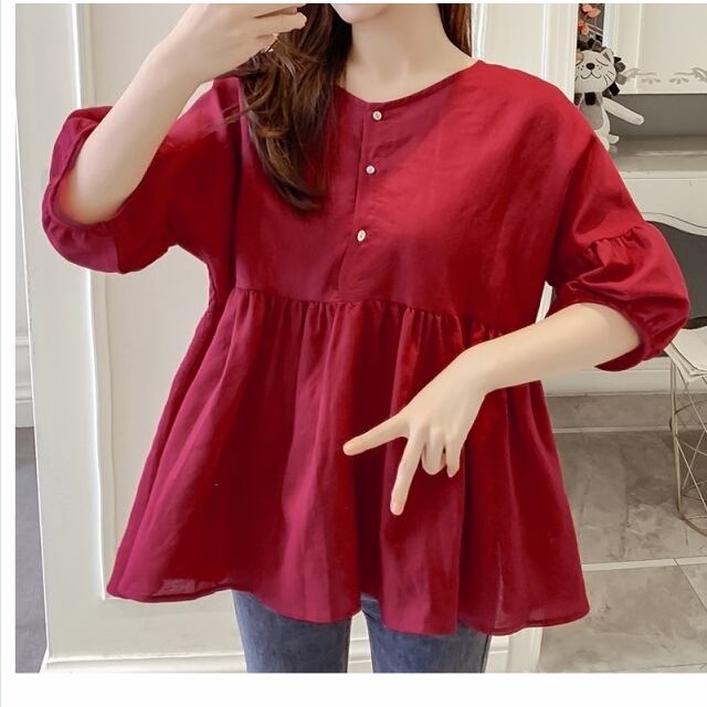 大きいサイズのレディーストップス 夏 リネン シャツ レディース トップス コットンリネンシャツ 白 白シャツ ラウンドネック ランタンス