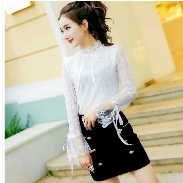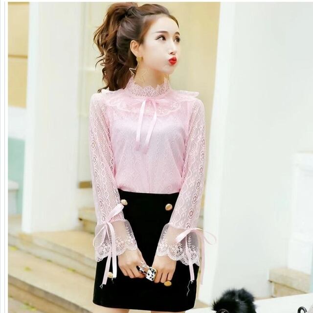 韓国 ファッション レディース トップス セクシー レース切り替えニット レディース ラウンドネック 長袖 無地 バイカラー 着痩せ 大人可
