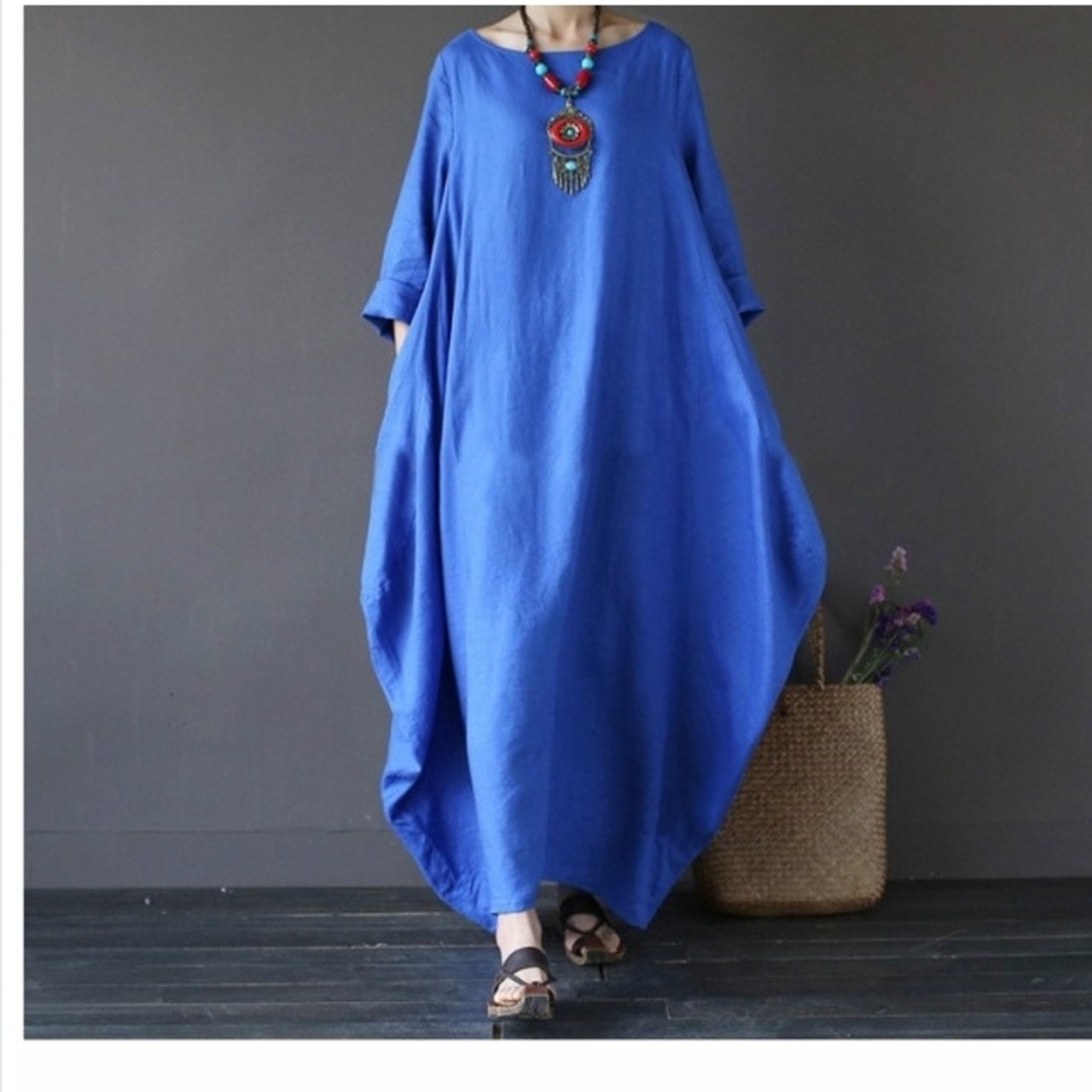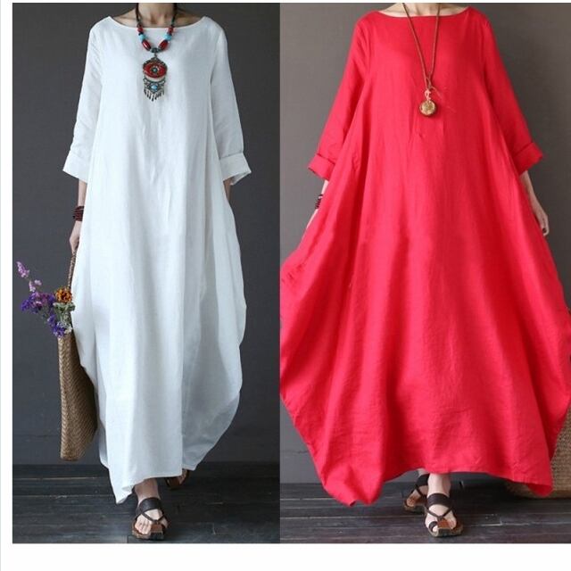 マキシワンピース 大きいサイズ 夏 マキシ丈 ワンピース 大きいサイズ ワンピース ロング丈 マキシ丈 綿 麻 ラウンドネック 無地 ゆった
