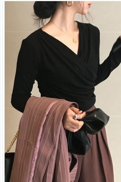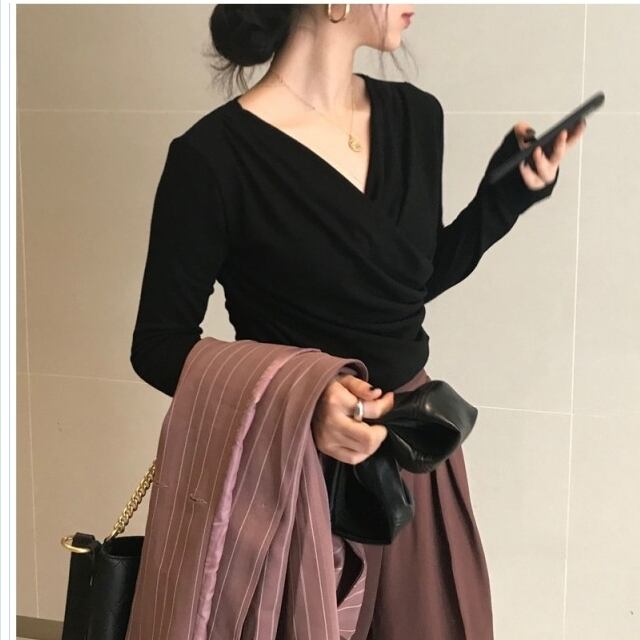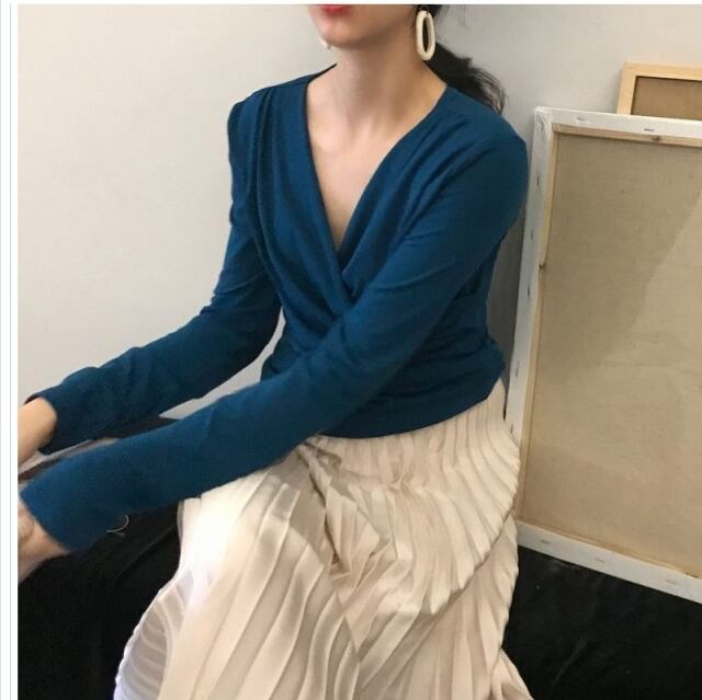 韓国 ファッション レディース トップス セクシー 新作! トップス ニット カシュクールニット Vネック 無地 3色 オルチャン 韓国ファッ
