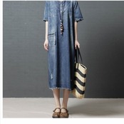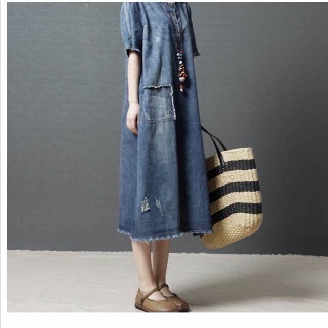 マキシワンピース 大きいサイズ 夏 マキシ丈 ワンピース 大きいサイズ デニムワンピース ロングワンピース ワンピース 夏 半袖 無地 レデ