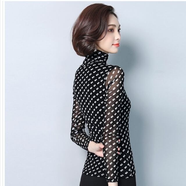韓国 ファッション レディース トップス セクシー チェック柄 長袖 レーストップス シャツ セクシー タートルネック スリム 新作 大きい