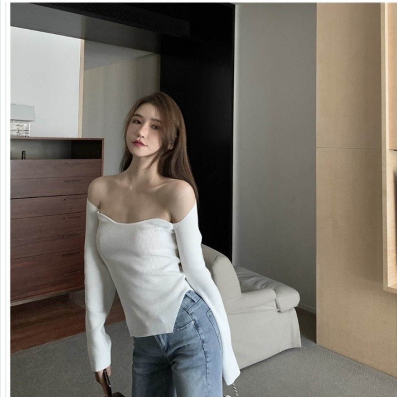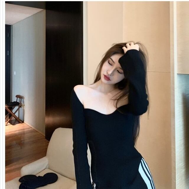 韓国 ファッション レディース トップス セクシー レディース インスタ映え セーター ニット レディース プルオーバー オープンショルダ