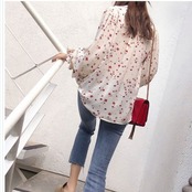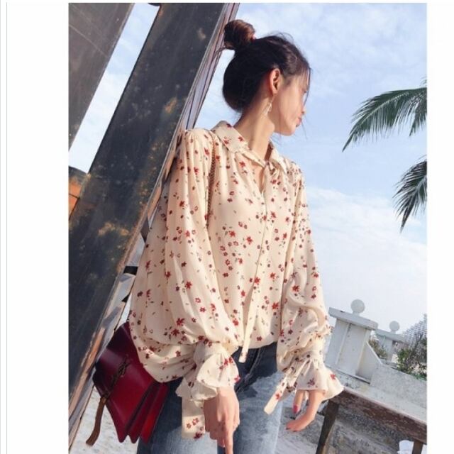 韓国 ファッション レディース トップス セクシー 花柄がオシャレシフォンシャツ 韓国ファッション 春物