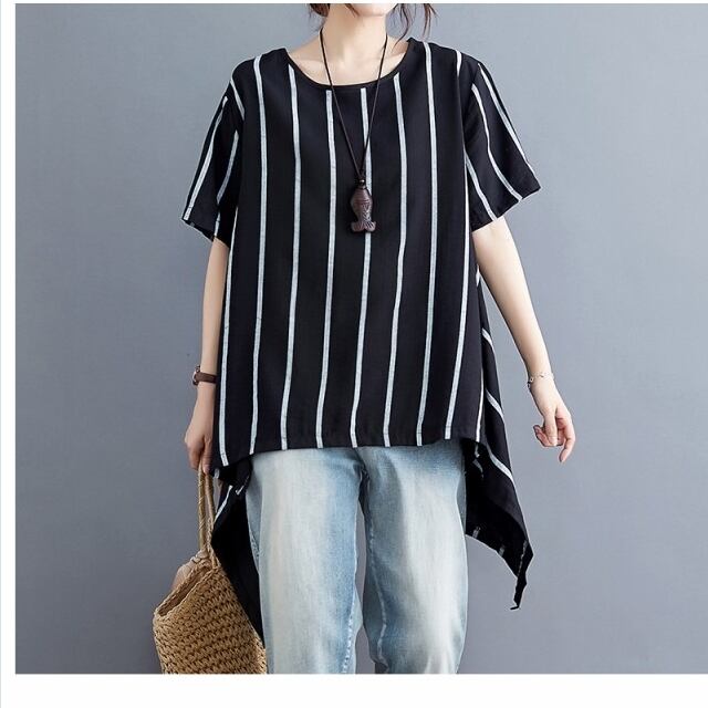 大きいサイズのレディーストップス 夏 ブラウス レディース 夏 トップス シャツ リネンブラウス 綿麻混tシャツ ゆったり 体型カバー tシ