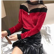 韓国 ファッション レディース トップス セクシー 白色 長袖 シフォンブラウス 透け感 穴あき くり抜き 秋 シャツ セクシー 新作 トップ