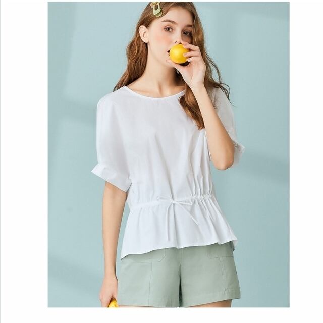大きいサイズのレディーストップス 夏 夏新作 大きいサイズ レディース トップス 無地 ストライプ柄 ウエストリボン 半袖 折り返しデザイ
