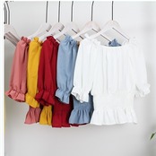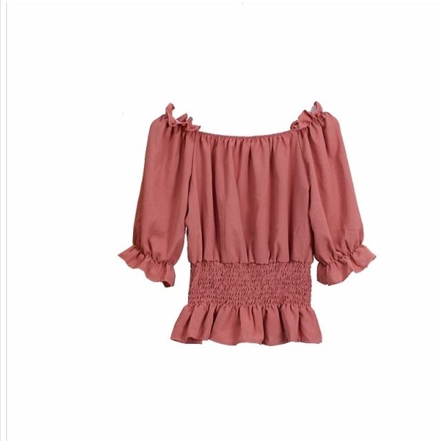 韓国 ファッション レディース トップス セクシー ブラウス レディース オフショル トップス 肩出し ボリューム袖 ペプラム
