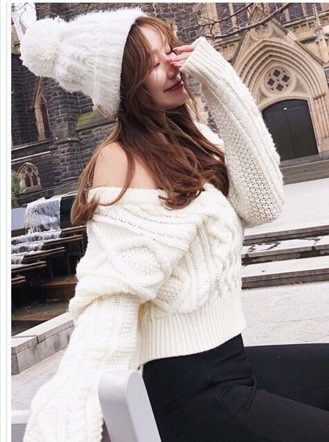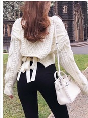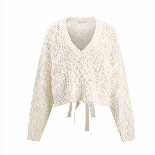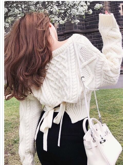 韓国 ファッション レディース トップス セクシー ニット リボン Vネック ケーブル編み レディース トップス