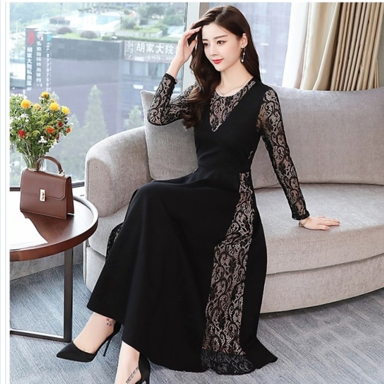韓国 ファッション レディース トップス セクシー パーティードレス 長袖 レーストップス 穴あき くり抜き 冬 秋 ボディコン ニット セク