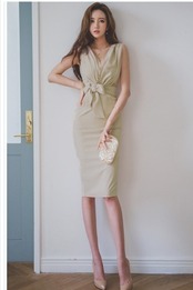 フェミニン ワンピース ワンピース レディース カシュクール ラップサイドリボン タイトワンピース 着回し 20代 30代 40代 伸縮性あり フ