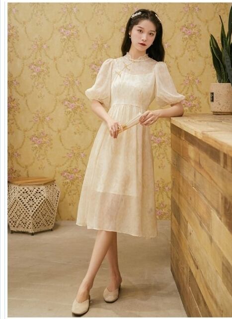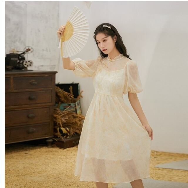 韓国 ファッション レディース トップス セクシー 刺しゅう レース 花柄 パフ袖 半袖 ブラウス 透け感 アンティーク レトロ 春夏 アイボ