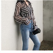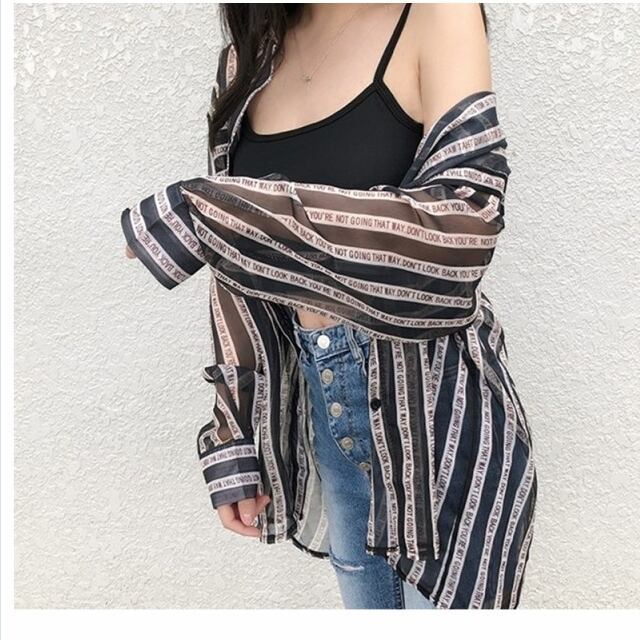 大きいサイズのレディーストップス 夏 レディース トップス ブラウス シャツ 長袖 ストライプ ゆったり 大きいサイズ エアコン対策 透け