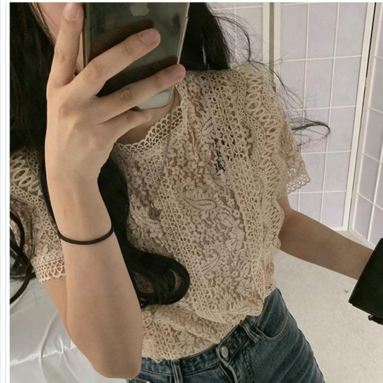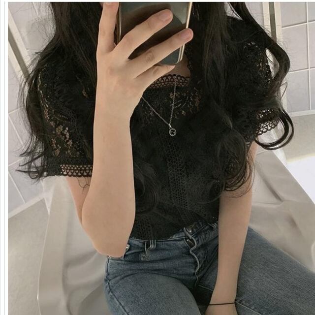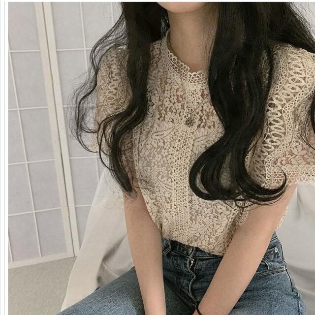 大きいサイズ レディース トップス 半袖 レース 総レース トップス シャツ ブラウス レディース 半袖 ラウンドネック フェミニン 通勤 オ