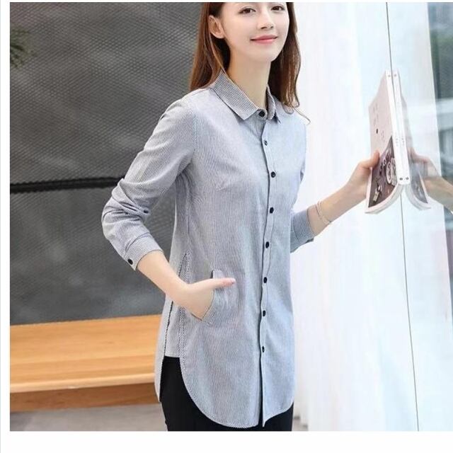 大きいサイズのレディーストップス 夏 ンシャツ ブラウス 長袖 ロング丈 ボーダー レディース 春夏 ワイシャツ ベーシック 体型カバー 女