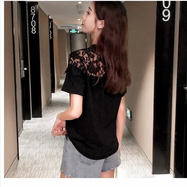 大きいサイズのレディーストップス 夏 大きいサイズ レディース Tシャツ カットソー レース トップス シースルー ゆったりめ セクシー 肌