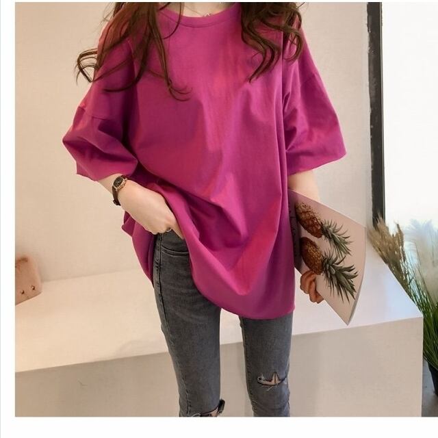 大きいサイズのレディーストップス 夏 Tシャツ レディース ゆったり 大きいサイズ ロン丈 無地Tシャツ ゆったり Uネック トップス ファッ
