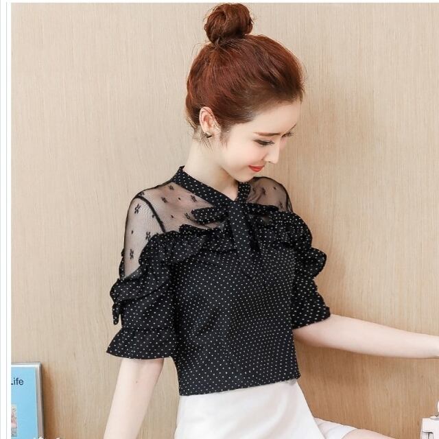 韓国 ファッション レディース 韓国 ファッション レディース トップス ブラウス シャツ 夏 春 秋 カジュアル シアー シフォン ボウタイ