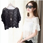 韓国 ファッション レディース トップス セクシー サマーニット レギュラー丈 レイヤード メッシュ 透け感 ドルマンスリーブ ドロップシ