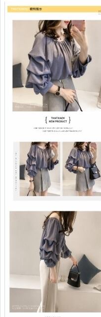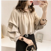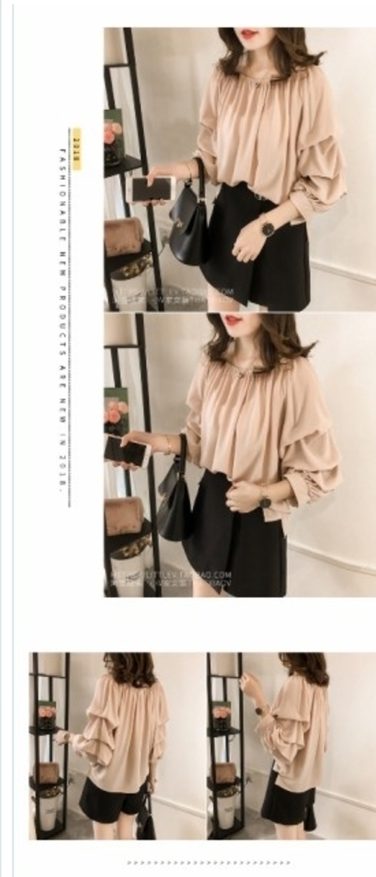 韓国 ファッション レディース トップス セクシー 袖フリル 長袖 シフォン 体型カバーブラウス 無地 可愛い トップス