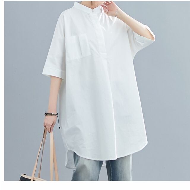 大きいサイズのレディーストップス 夏 ブラウス レディース 夏 シャツ トップス シフォンブラウス 半袖 白シャツ ゆったり 体型カバー ロ
