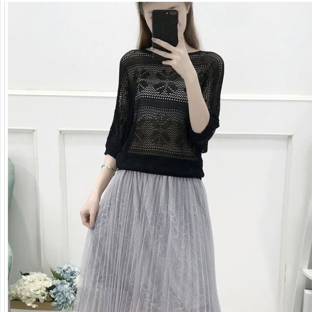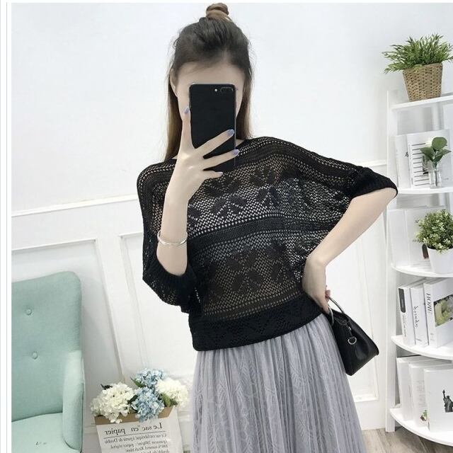 韓国 ファッション レディース トップス セクシー 半袖 サマーニット レギュラー丈 ドルマンスリーブ 重ね着 レイヤード オーバーニット