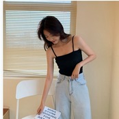 韓国 ファッション レディース トップス セクシー ショート丈 ニットキャミソール サマーニット ニットトップス フレア袖 シースルー袖