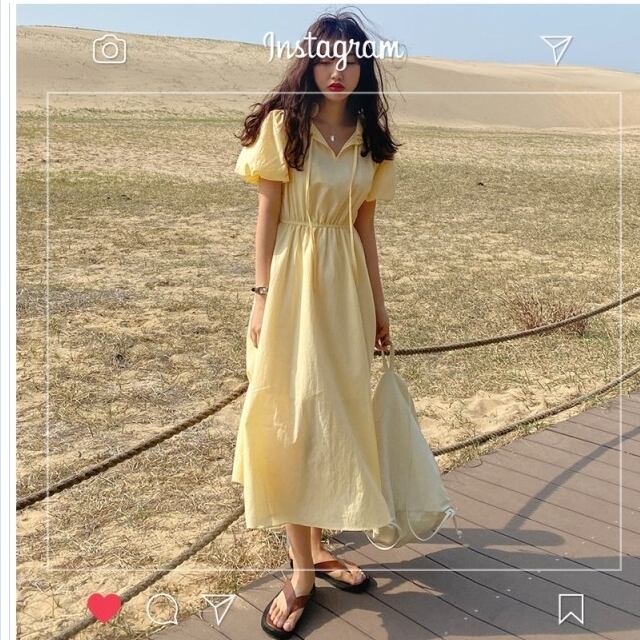 韓国 ファッション レディース 韓国 ファッション レディース ワンピース 夏 春 カジュアル 袖コンシャス Aライン シンプル 着回し シン