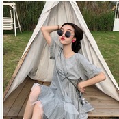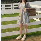 韓国 ファッション レディース 韓国 ファッション レディース ワンピース 夏 春 カジュアル マーメイド マキシ丈 バルーン袖 ノーカラー