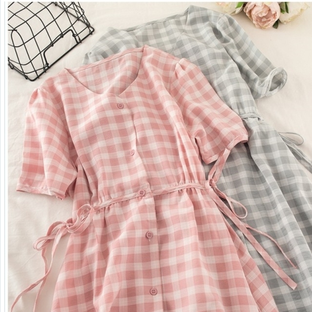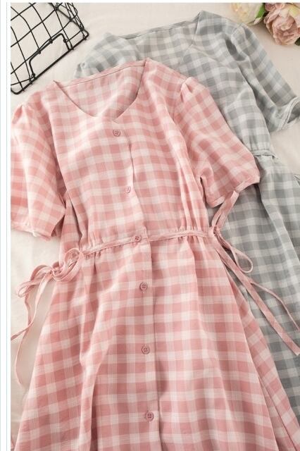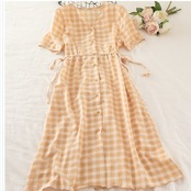 韓国 ファッション レディース 韓国 ファッション レディース ワンピース 夏 春 カジュアル くすみカラー チェック パフスリーブ ゆった