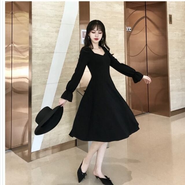 韓国 ファッション レディース 韓国 ファッション レディース ワンピース パーティードレス ひざ丈 ミディアム 秋 冬 春 パーティー ブラ