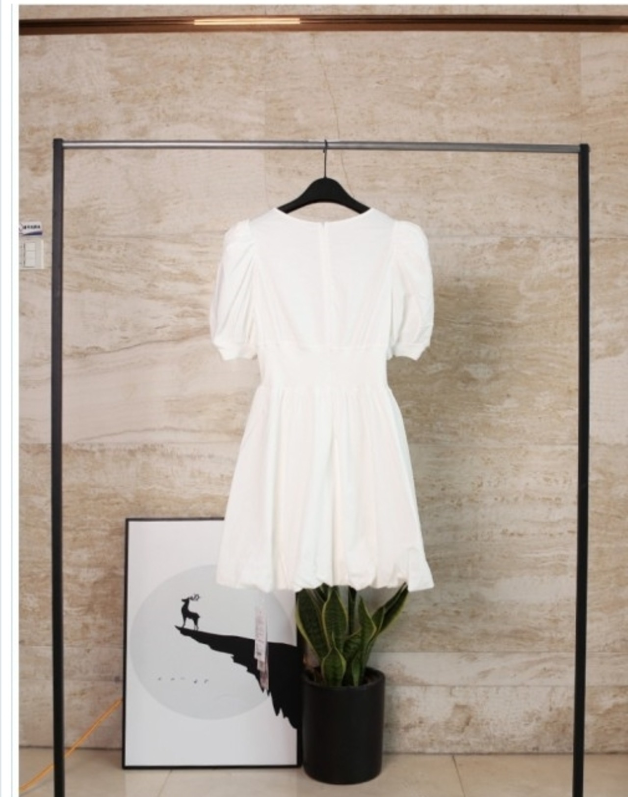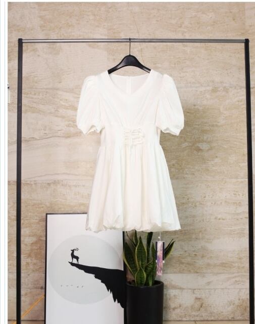 韓国 ファッション レディース 韓国 ファッション レディース ワンピース 夏 春 カジュアル バルーン袖 レースアップ イレギュラーヘム