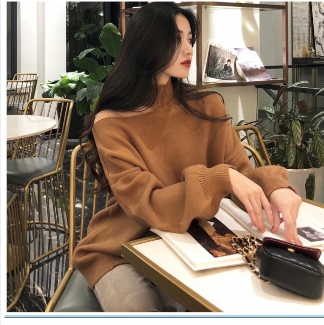 アシンメトリー トップス レディース トップス 長袖 レディース トップス 長袖 秋冬 韓国 セクシー ニット アシンメトリー 肌見せ 肩出し