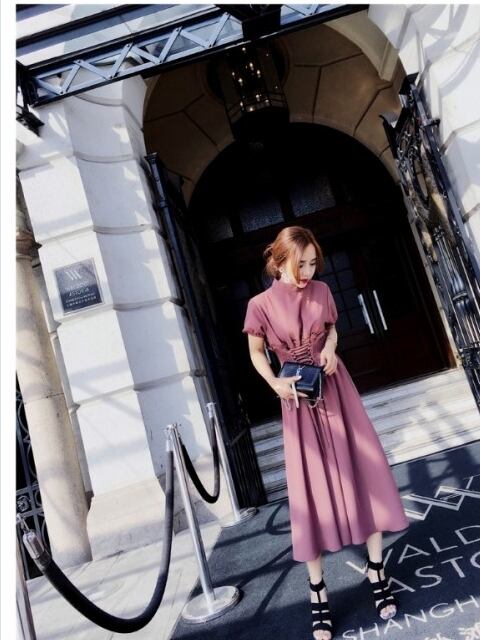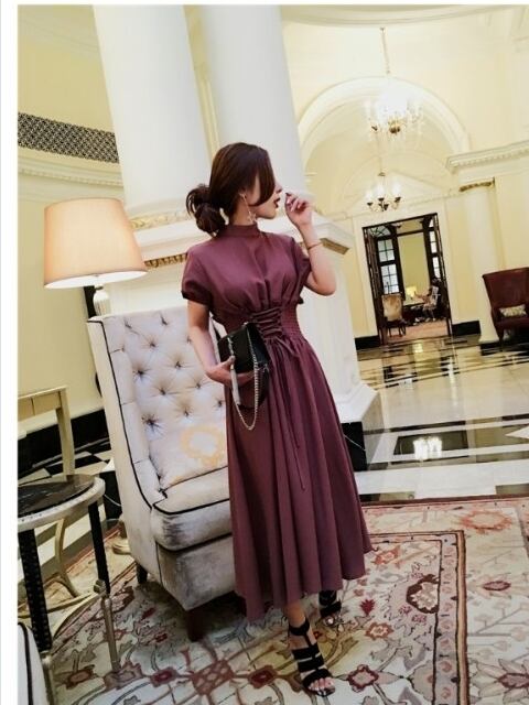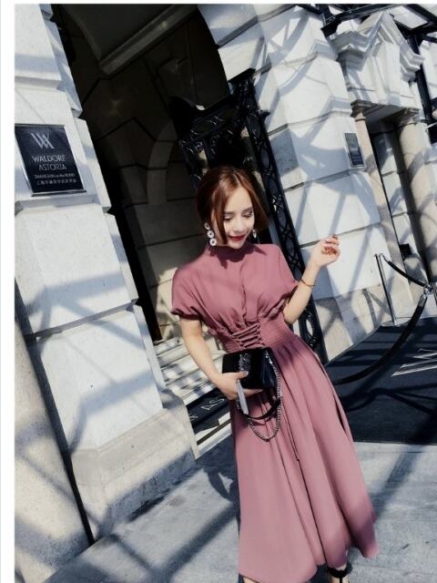 韓国 ファッション ワンピース レトロ シフォン ワンピース レディース 春 秋 服 ミモレ 丈 半袖 韓国 ファッション 大人 可愛い レース