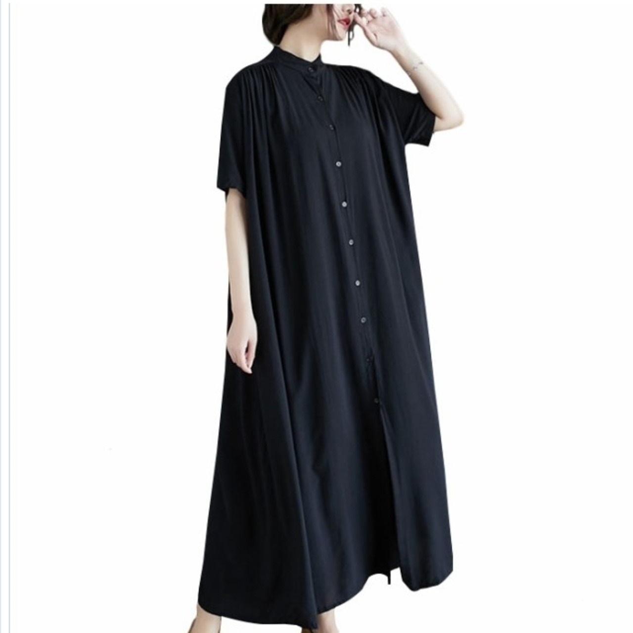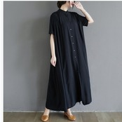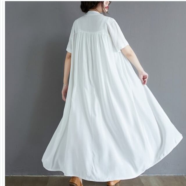 韓国 ファッション レディース 夏新作 大きいサイズ レディース ワンピース ピンタックコットンロングワンピース ワンピ シャツワンピー