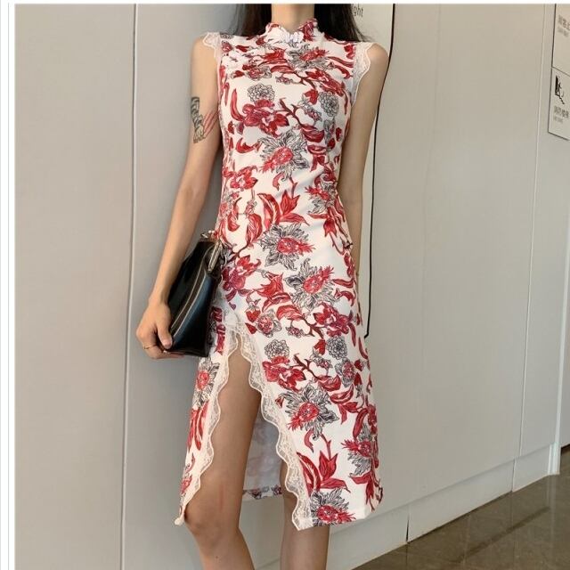 大人 ワンピース タイト 膝丈 赤 セクシー ワンピース 花柄 タイト セクシーワンピース ワンピ オープンバック ナイトドレス