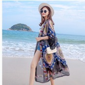 大きいサイズ コーディガン トップス ロングカーディガン ミディ丈 膝下 エスニック柄 ボヘミアン シフォン 透け感 カラフル ワイドスリ