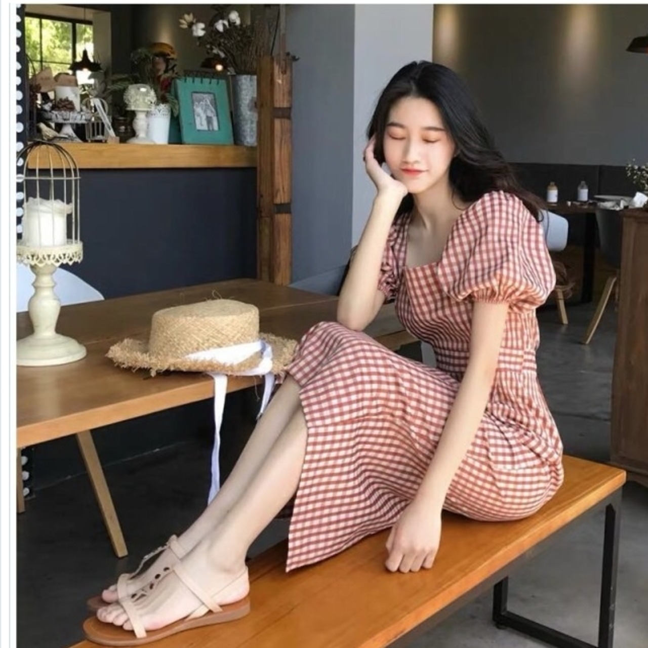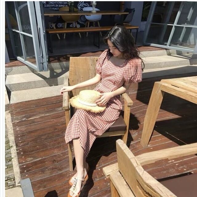 韓国 ファッション レディース リゾートワンピース ワンピース リゾート 韓国 ファッション 夏 春 カジュアル マキシワンピース ギンガム