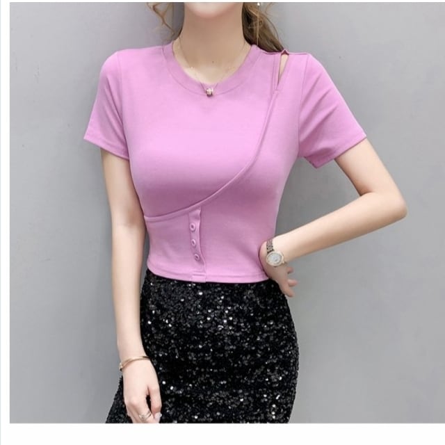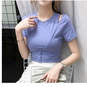 アシンメトリー トップス 変形トップス アシンメトリー トップス レディース Tシャツ 半袖 無地 おしゃれ カットアウト カットソー カジ