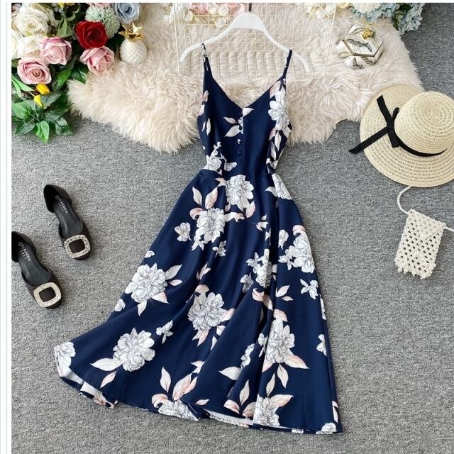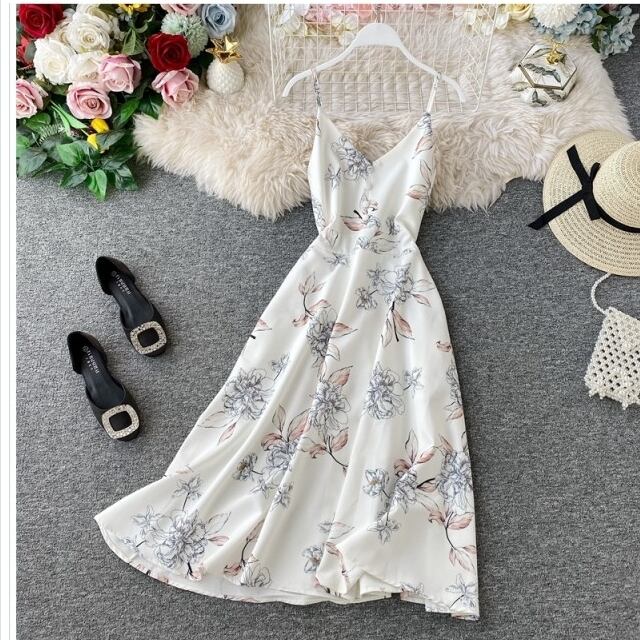 サマー ドレス リゾート 大きいサイズ キャミワンピ ロング サマードレス 花柄 Vネック バッククロス マキシ丈ワンピース マキシワンピ