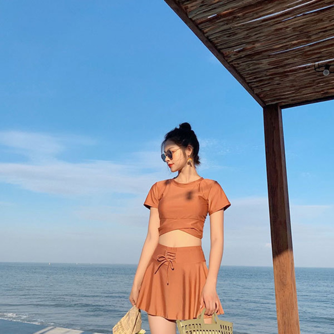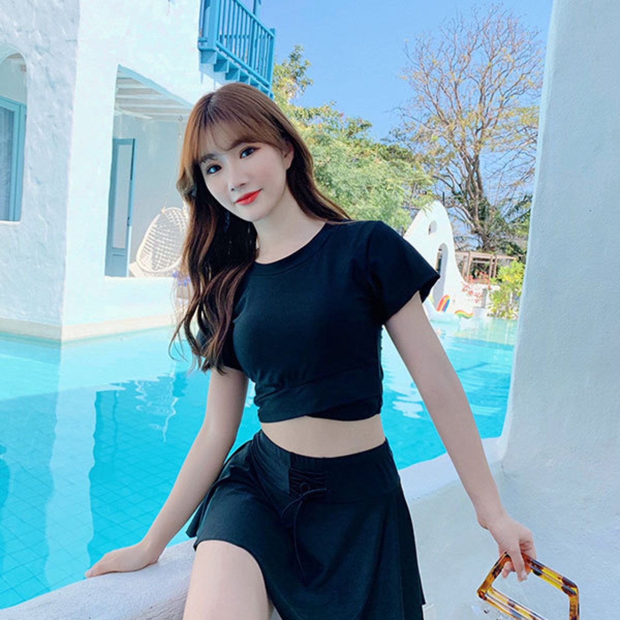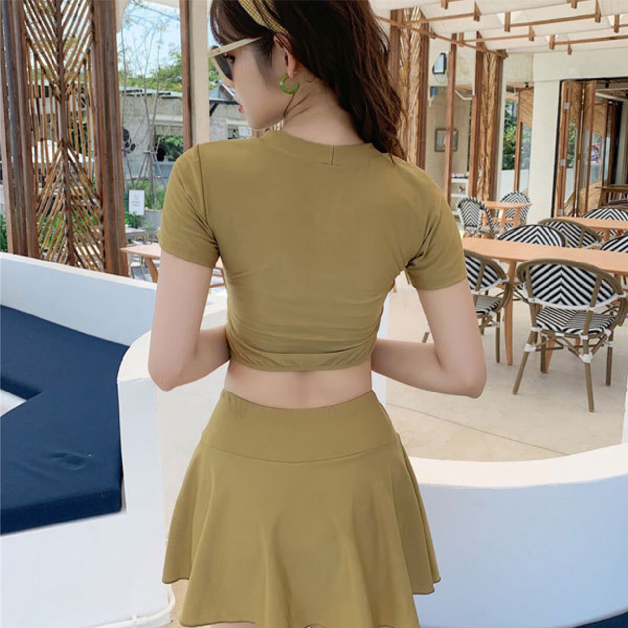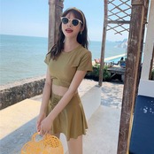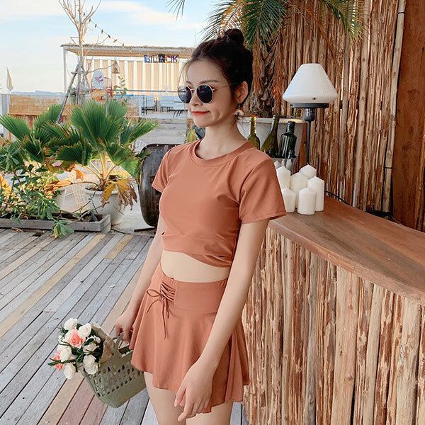 nin220906 半袖 ラウンドネック 上下セット シンプル 無地 夏 リゾート