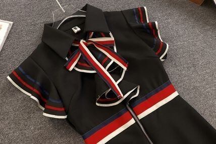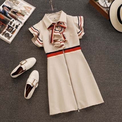 【送料無料】【2色】 半袖 リボン マルチカラー ワンピース net220924