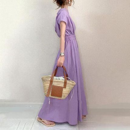 ワンピース ロング丈 ベルト付き フレンチスリーブ 2色 nin220902