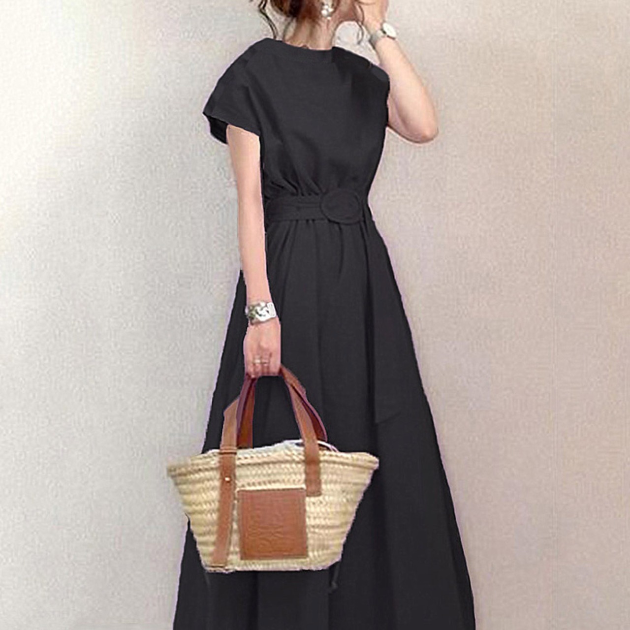 半袖 マキシ ハイウエスト フレンチスリーブ ワンピース A02875 nin220901