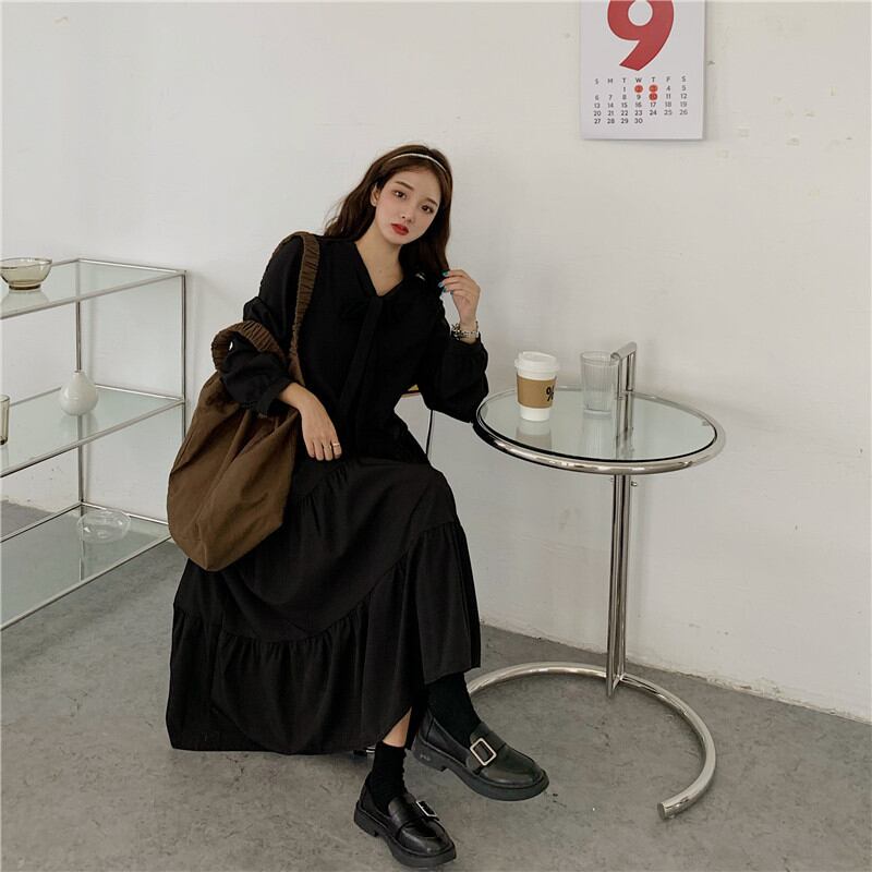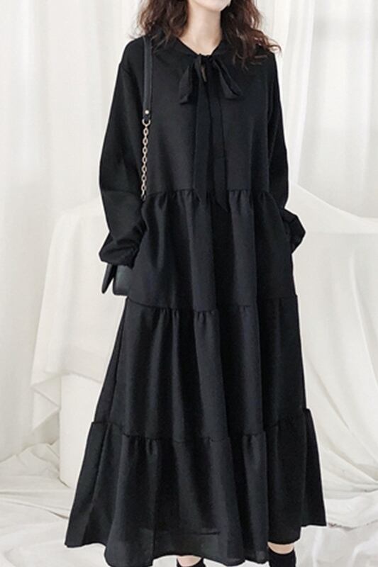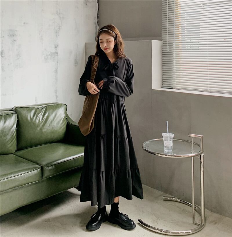 トレンド ティアードワンピース 黒 aaa220927