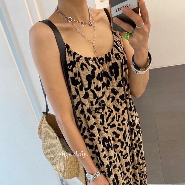 レオパード プリーツ メイズ ワンピース 2色 ymk220921