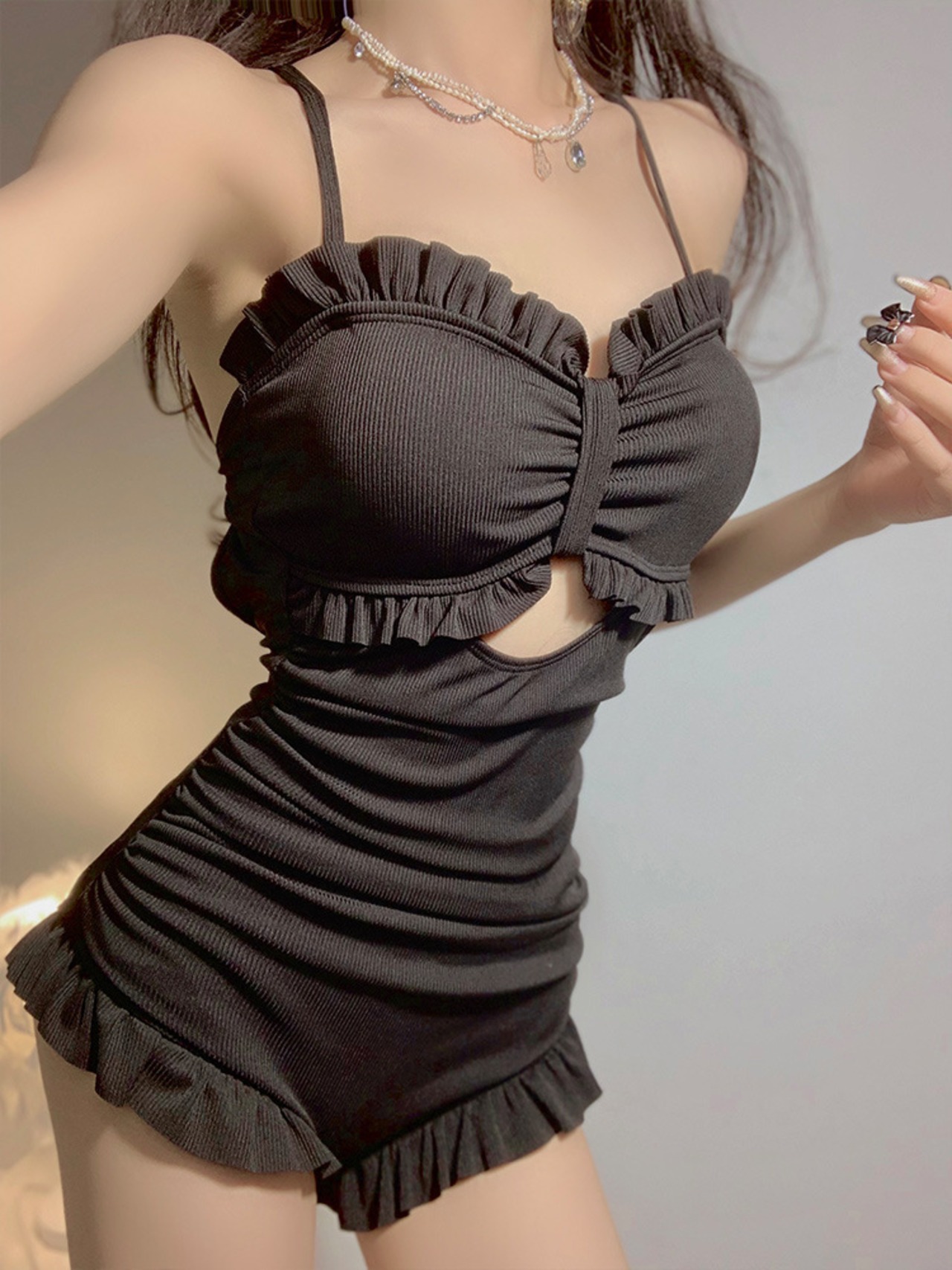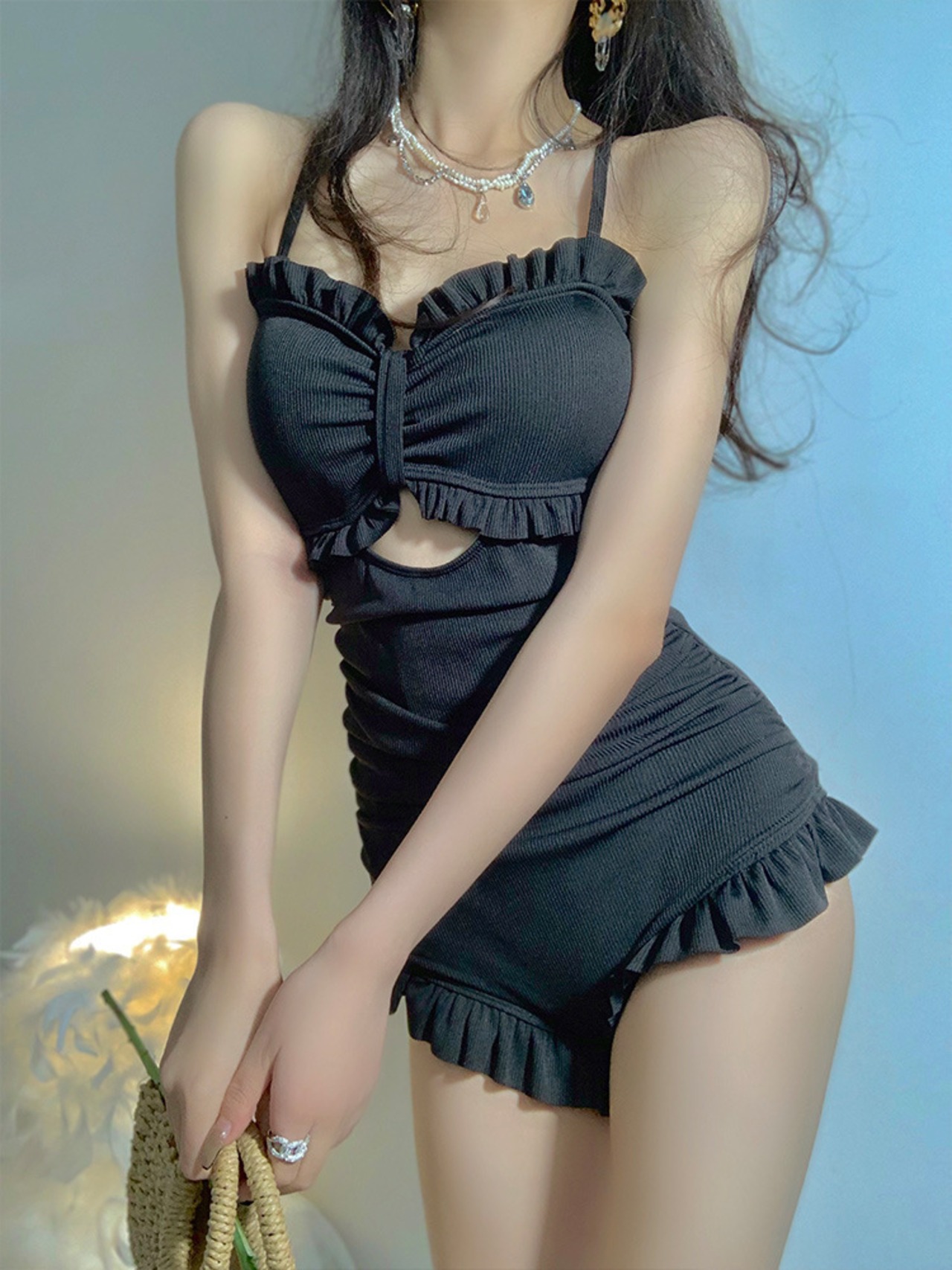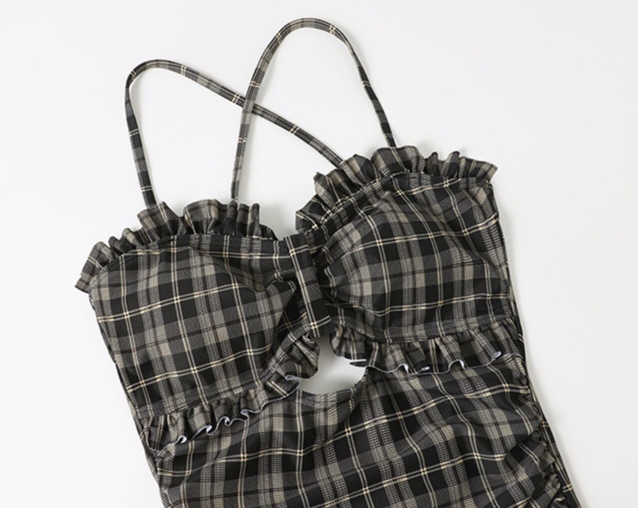 チェック柄 フリル クロスストラップ モノキニ ワンピース 水着 yyx220905