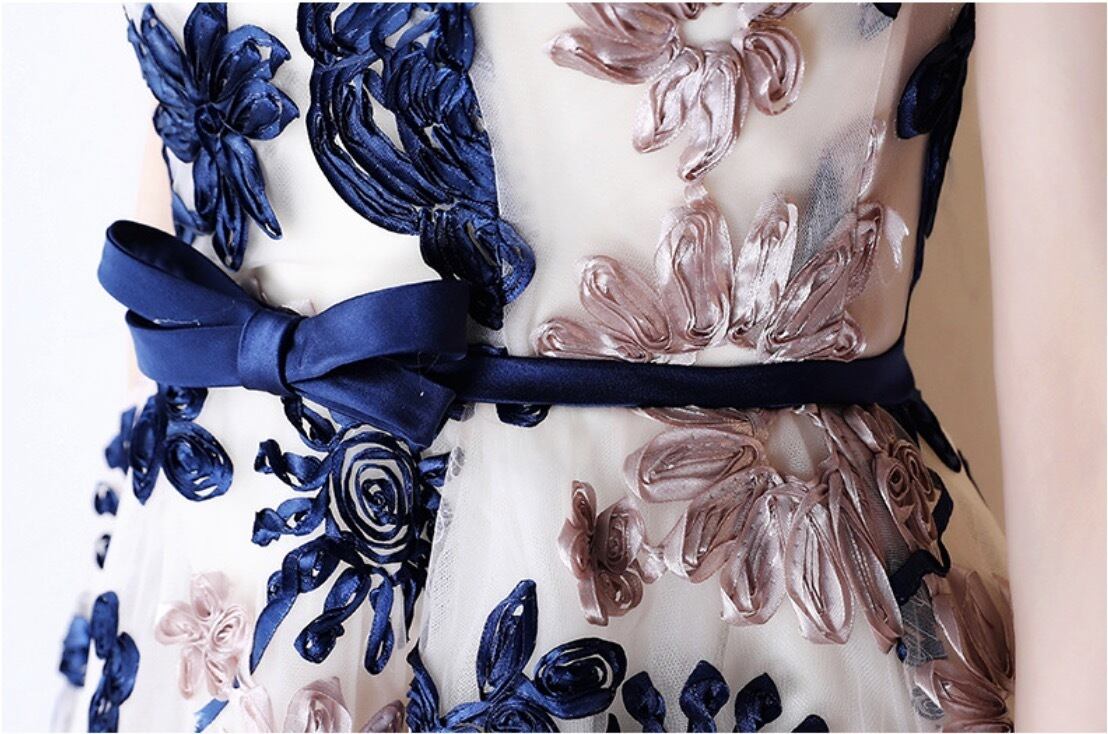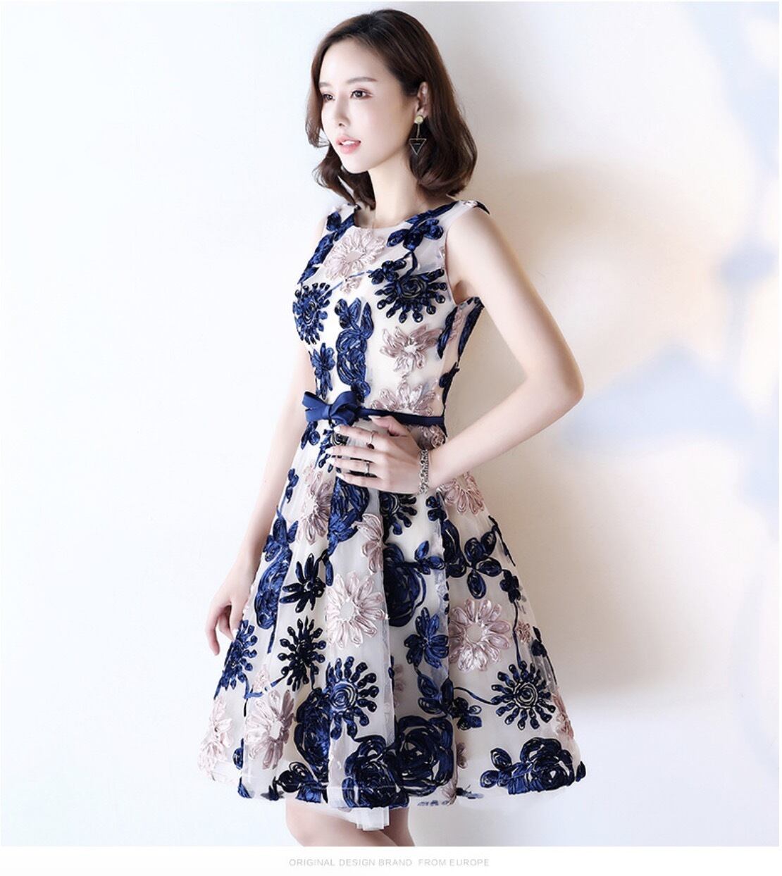 パーティードレス 結婚式 ワンピース バックシャン 花柄 Aライン nin220901