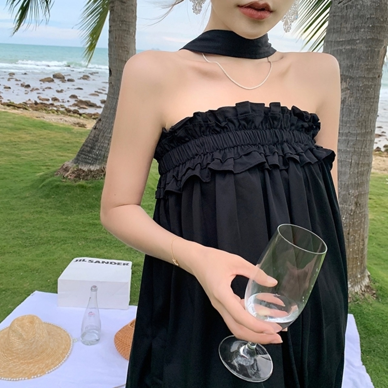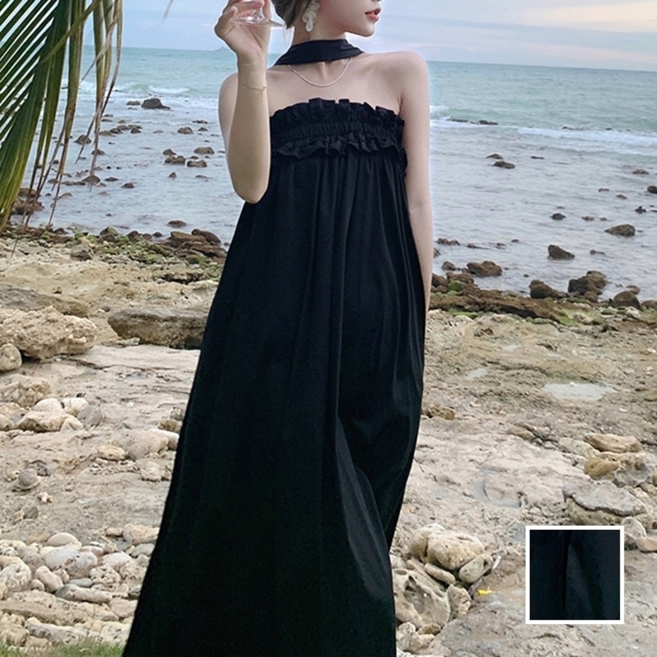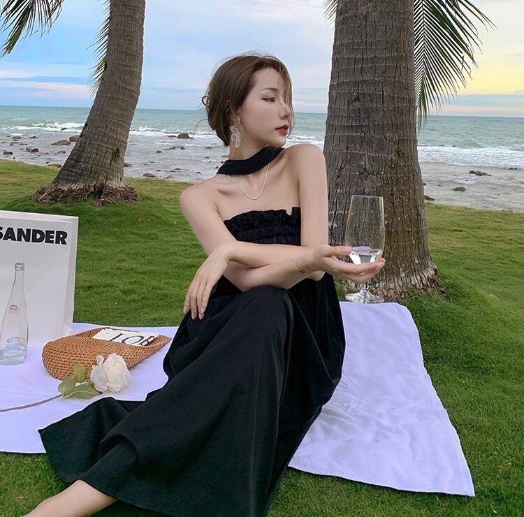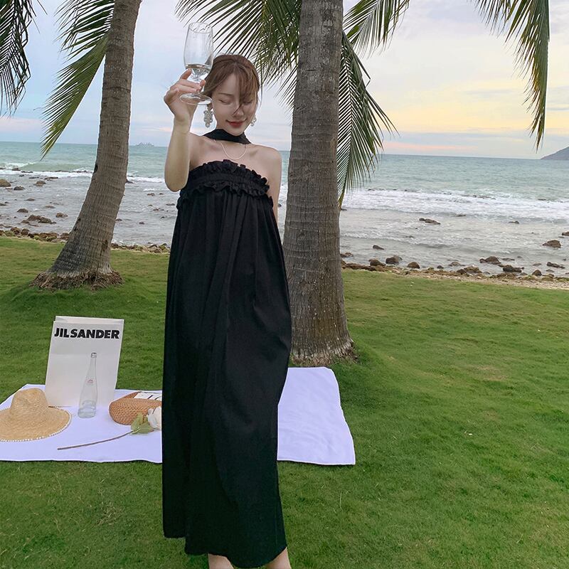 リゾートワンピース チョーカー風 チューブワンピース ギャザー net220920