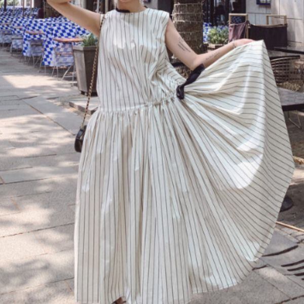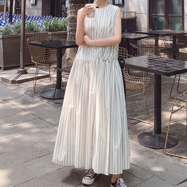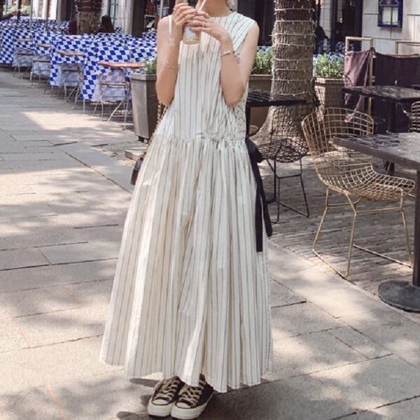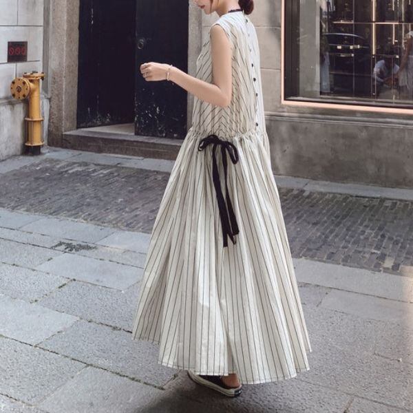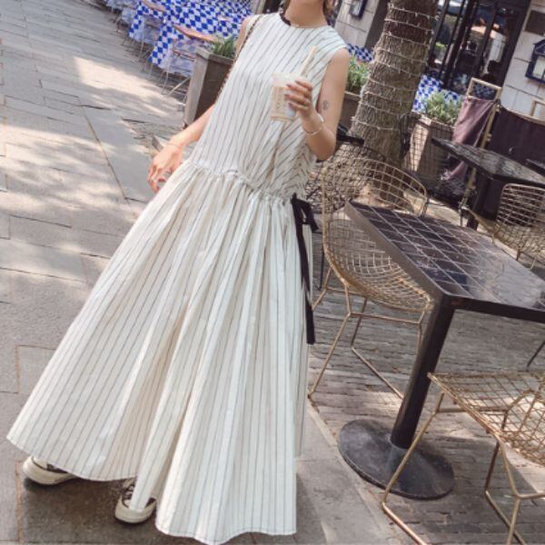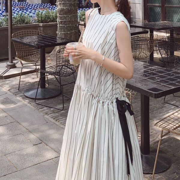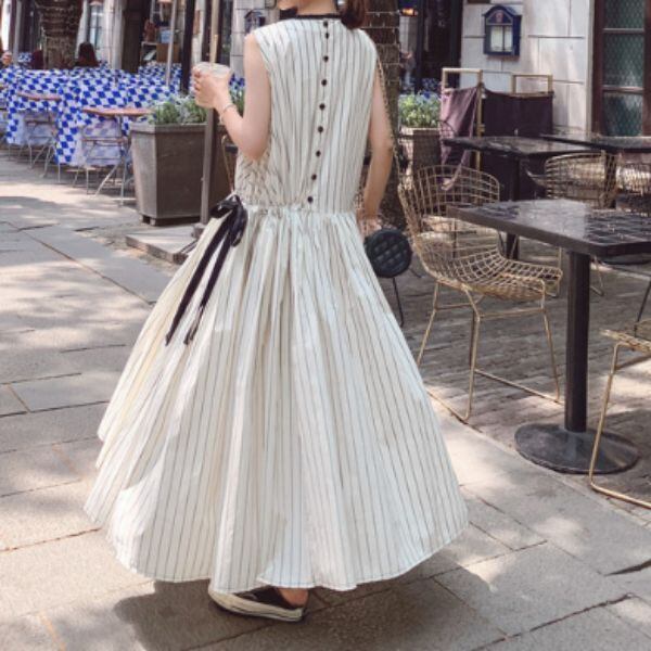nin220906 LCD-2005-025 ワンピース ノースリーブ ストライプ リボン